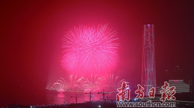 火树银花,流光溢彩,16万发礼花绽放濠江之畔。