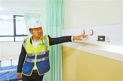 漫步于主体建筑及部分样板展示间,记者发现项目为便利老年人生活作出很多独特设计。室外有阶梯的地方设置了无障碍通道,楼道所有走廊装有高低两层扶手,方便不同身高老人支撑;室内的一键报警系统、床头的吸氧设备、卫生间的无障碍设施、24小时恒温系统等也一应俱全。
